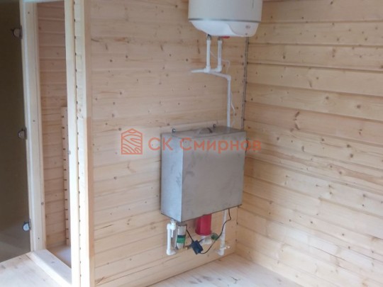 В качестве дополнительной услуги мы предлагаем установку удобной душевой системы из бойлера, насоса, бака для воды и смесителя. Таким душем можно пользоваться отдельно от сауны. Приэтом наличие водопровода необязательно.