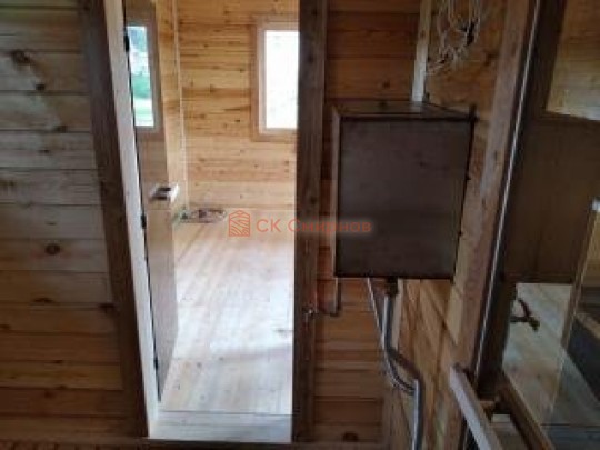 Проект простой: комната отдыха, моечная и парная. Однако есть своя классная особенность — над парной и моечной надстроены палати. Могут использоваться для хранения или в качестве спального места. Есть приставная лестница. Баня может использоваться в качестве дачи.
