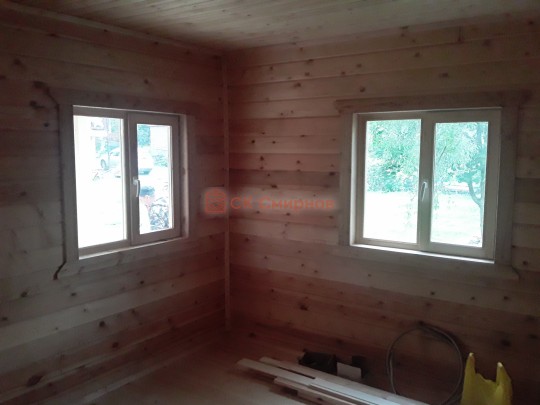 Окна мы устанавливаем настоящие деревянные стеклопакеты с фурнитурой как на пластиковых окнах, дерево используется клееное, повторюсь, не имитация деревянных стеклопакетов, а именно качественные окна.