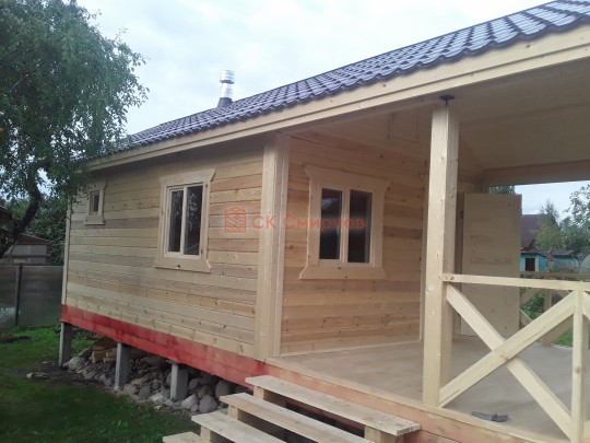 Для строительства бани под ключ по проекту №300 подходит сухой и клееный брус