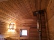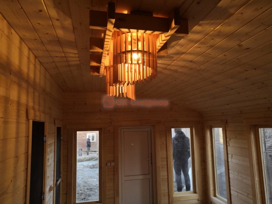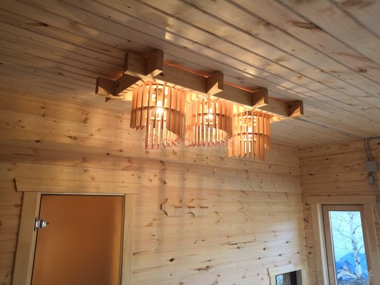 В этой серии бань делается электропроводка открытая, выключатели, светильники, розетки.