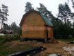 Из профилированного сухого бруса 9х14см, 14х14 см или 14х19 см. Сборка сруба в теплый угол на нагеля или гвозди 200 мм со сверлением отверстия в верхнем брусе (в зависимости от вида бруса).