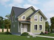 На фото представлен проект жилого дома №256 габаритами 7.5х8.5 метров и отличной планировкой общей площадью 124 квадратных метров. Можно выделить несколько особенностей проекта: эркер, туалет, ванная, санузел, панорамные окна. Особняк полутораэтажный, может использоваться как зимний, для постоянного проживания, коттедж.