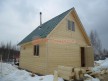 Из профилированного сухого бруса 9х14см, 14х14 см или 14х19 см. Сборка сруба в теплый угол на нагеля или гвозди 200 мм со сверлением отверстия в верхнем брусе (в зависимости от вида бруса).