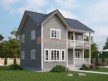 На фото представлен проект недорогого двухэтажного дома №257 габаритами 8х9 метров и отличной планировкой общей площадью 142 квадратных метров. Такой каркасный коттедж может использоваться как зимний для постоянного проживания — при условии дополнительного слоя утеплителя.